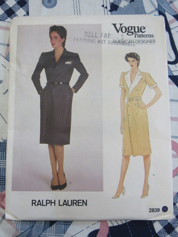 Uncut Vogue Sewing Pattern 2839 Ralph Lauren Misses Size 16 18 Etsy